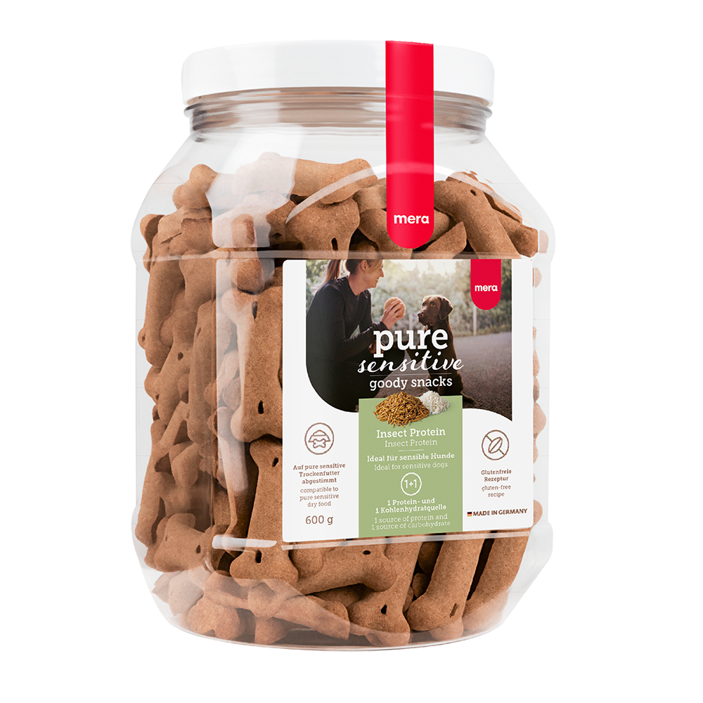 I pure sensitive Goody Snacks alle Proteine di Insetti sono premietti specificamente studiati per cani con sensibilità alimentari, grazie all’utilizzo di una fonte proteica alternativa ed estremamente rara. In questa ricetta utilizziamo esclusivamente le larve di Hermetia illucens (mosca soldato nera) come unica fonte di proteine animali, abbinandole al riso come fonte di carboidrati facilmente digeribile.