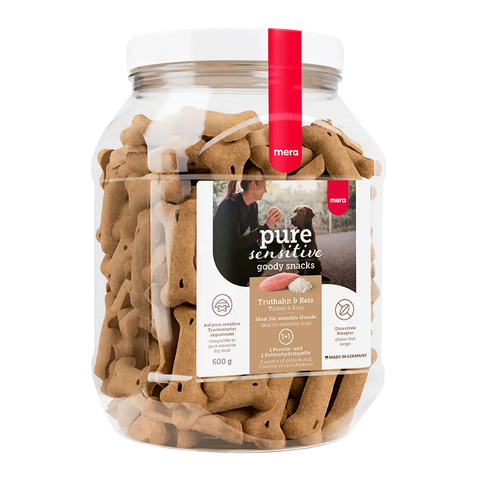 Anche i cani più sensibili meritano un premio! I pure sensitive Goody Snacks sono lo spuntino ideale per l’addestramento o come piccola ricompensa quotidiana. Grazie al tacchino come unica fonte di proteine animali e al riso facilmente digeribile, la ricetta non contiene ingredienti a base di glutine.